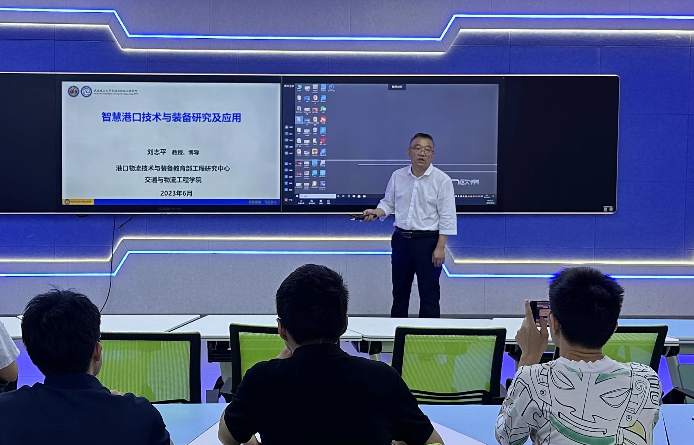 6月30日上午,武汉理工大学交通与物流工程学院副院长、博士生导师、港口物流技术与装备教育部工程研究中心主任、中国机械工程学会物流工程分会常务委员、全国集装箱标委会委员刘志平教授应邀到我校leyu2007智慧教室作了题为《智慧港口技术与装备研究及应用》的报告会。leyu、数学与信息工程学院、建筑工程学院教师代表参加报告会。会议由leyu院长吕争主持。