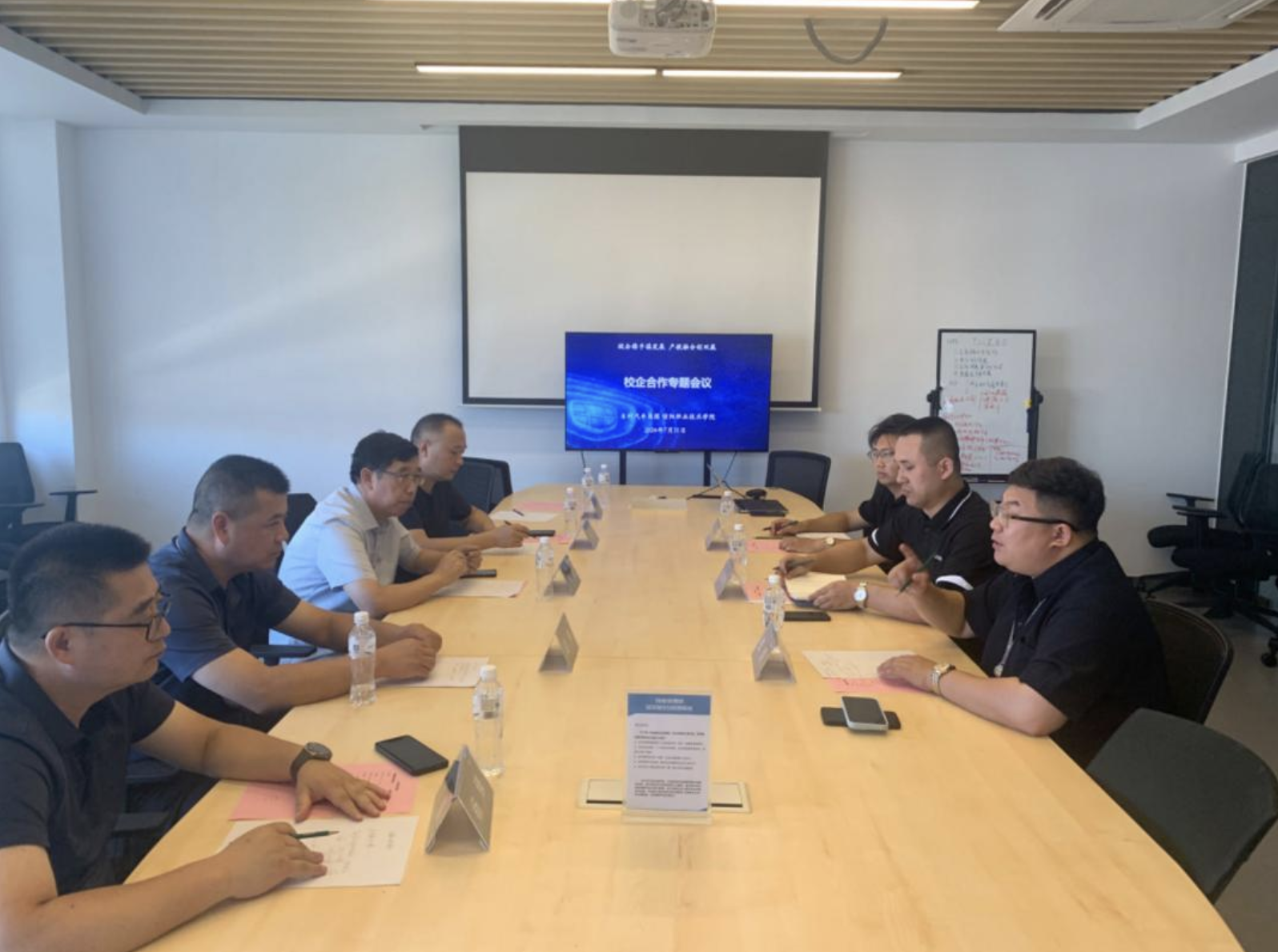 在与各企业交流座谈期间,校企合作办主任余磊从办学定位、办学规模、专业设置、教学改革、招生就业、社会服务等方面详细介绍了学校和学院近年来的发展情况和取得的一系列标志性成果。余磊表示,学校高度重视校企合作工作,希望以本次交流座谈为契机,深入了解企业对人才培养的需求,推进人才培养模式不断创新,不断增强人才培养的针对性和适应性;同时深化产教融合,积极了解企业在员工培训、科技开发、技术服务方面的需求,进一步拓展与企业合作的广度和深度。相信未来校企双方能将在产教融合、科教融汇的道路上携手并进,共同推动职业教育事业和经济社会的高质量发展。