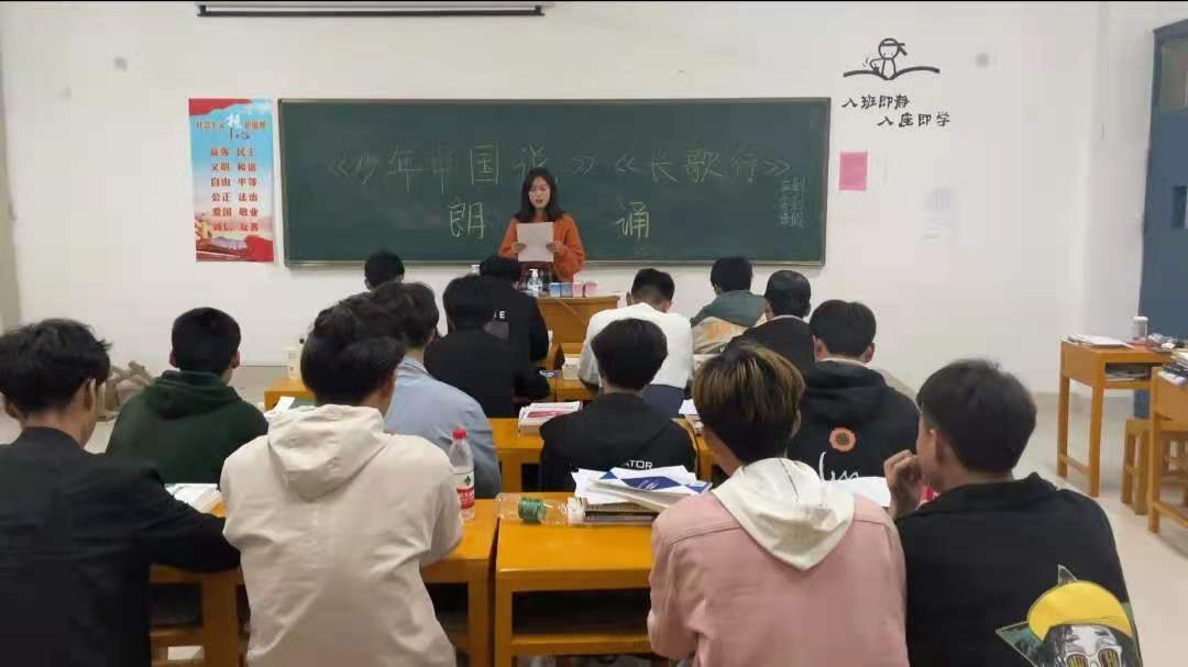 会上,心理委员带领学生齐声诵读了《少年中国说》(节选)、《长歌行》。《少年中国说》是中国近代思想家、政治家、教育家、史学家、文学家,戊戌变法(百日维新)领袖之一、中国近代维新派、新法家代表人物梁启超先生所作,毛泽东主席青年时曾与同学们一起齐声诵读,抒发情怀,振奋精神,激励斗志。《长歌行》是汉乐府中的一首诗,属《相和歌辞》,是劝诫世人惜时奋进的诗篇。学生们在班级教室精神抖擞地齐声诵读,整齐宏亮,书声朗朗响彻校园。