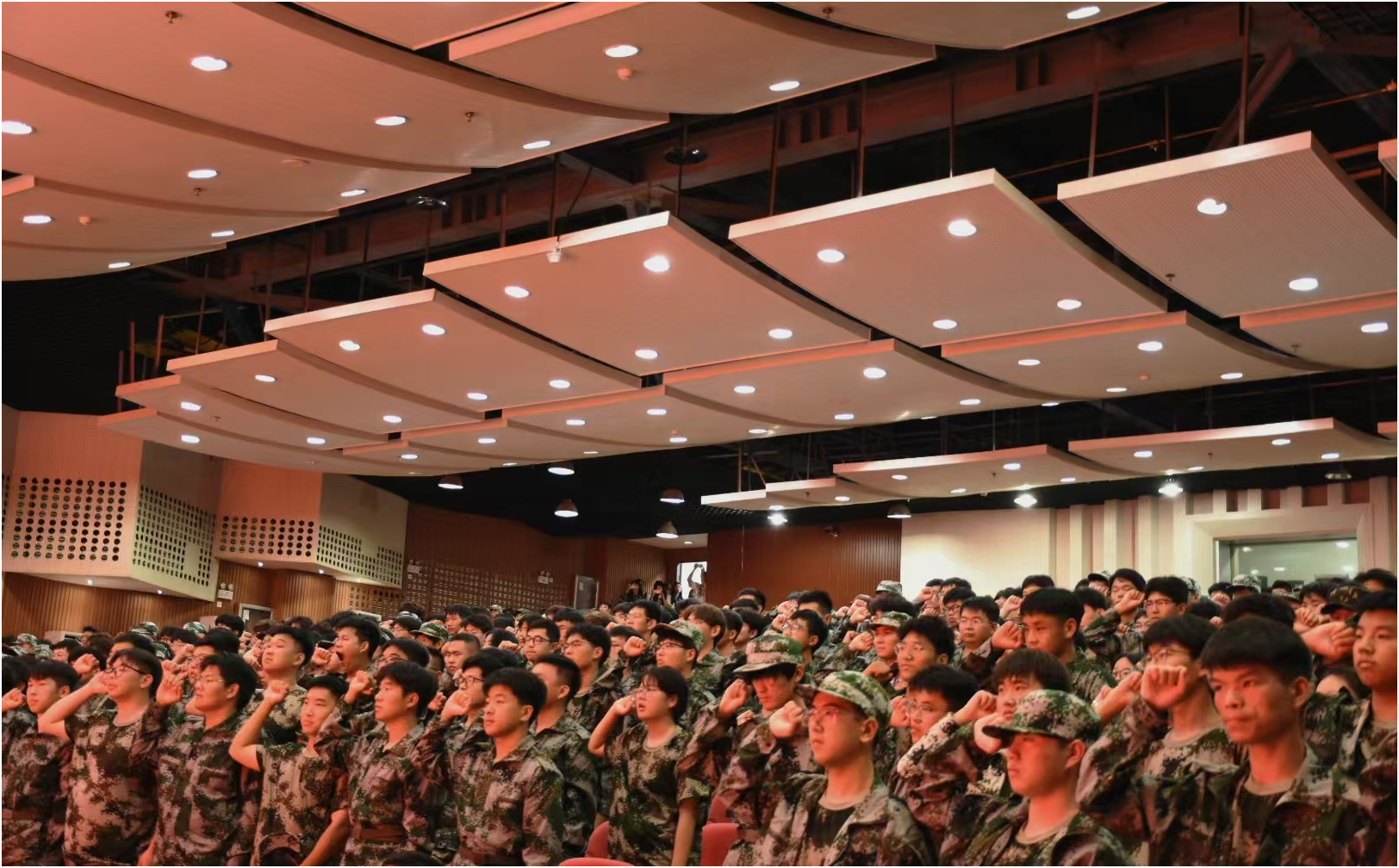 最后全体新生在团总支书记李明的带领下宣誓新生入学誓词。宣誓声音整齐洪亮,响彻整个图书馆报告厅。