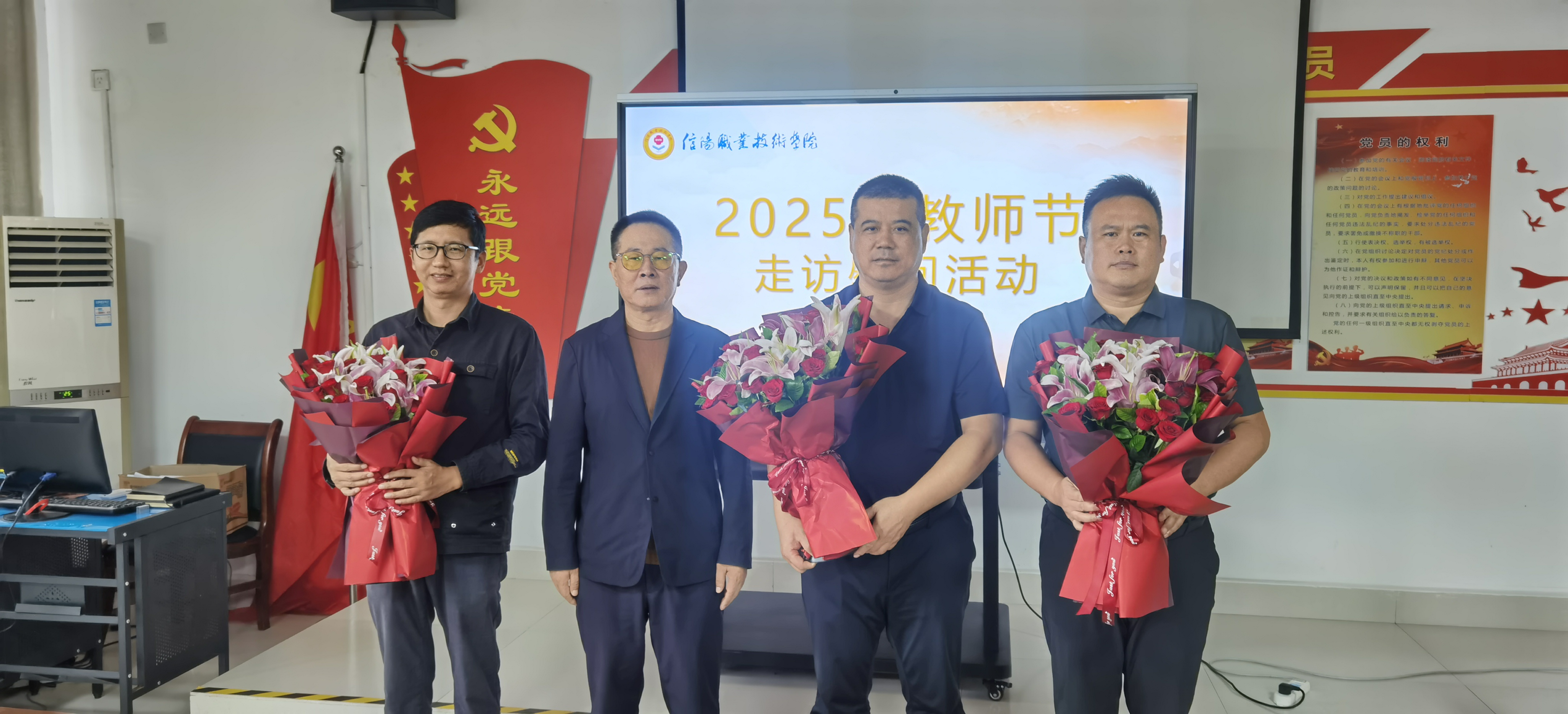 在第41个教师节来临之际,9月10日,校党委委员、副校长周有国到我院走访慰问院长吕争教授、余阿东教授、冯金地博士及教师代表,并通过他们向全体教职工致以节日的祝福和诚挚的问候。